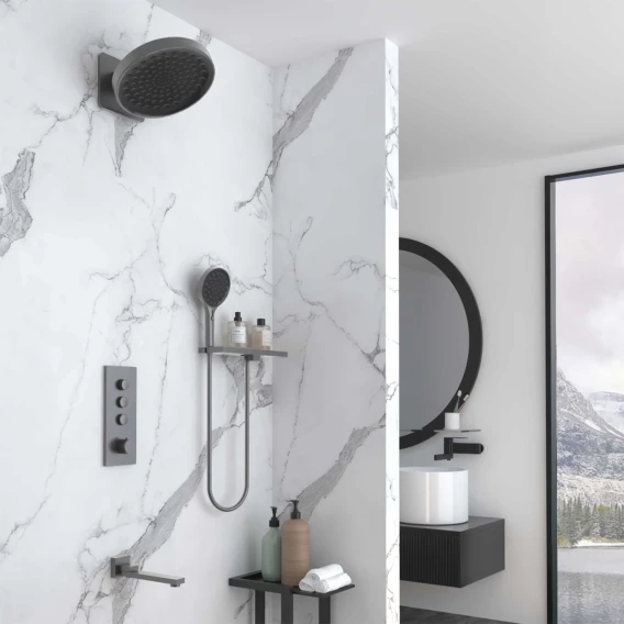 Душевой комплект Vincea VSFW-433TI3RGM 300 мм, с термостатом, вороненая сталь