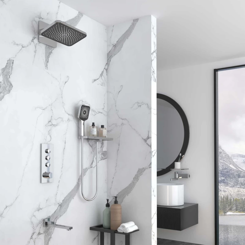 Аэратор, Душевой шланг, Душевая лейка, Подключение для душевого шланга с держателем, Полочка, Верхний душ, Излив, Скрытая монтажная часть, Кронштейн, Термостат