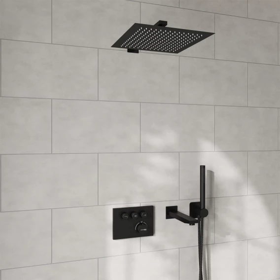 Аэратор, Душевой шланг, Душевая лейка, Подключение для душевого шланга с держателем, Верхний душ, Излив, Скрытая монтажная часть, Кронштейн, Термостат