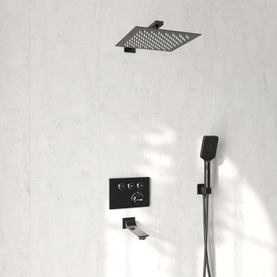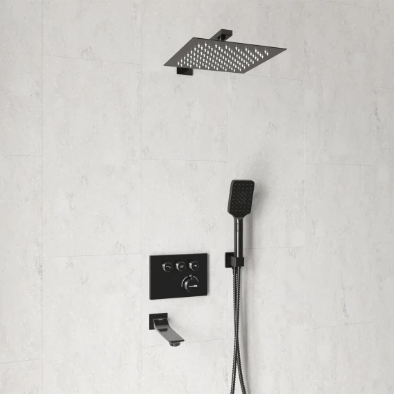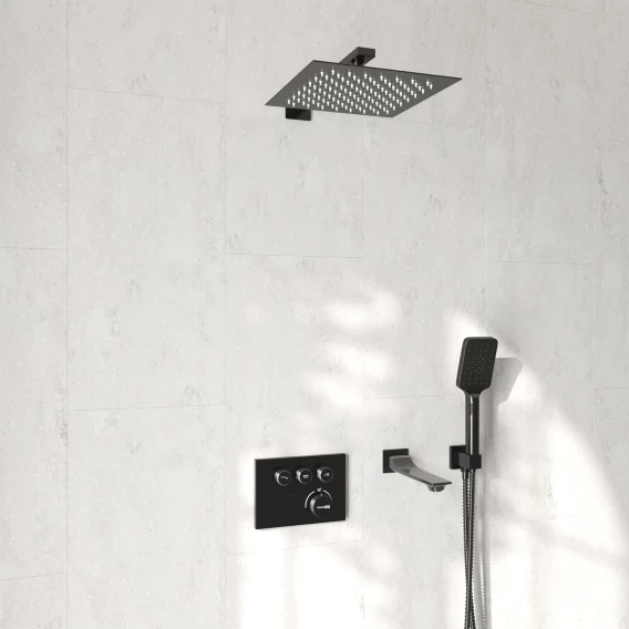 Аэратор, Душевой шланг, Душевая лейка, Подключение для душевого шланга с держателем, Верхний душ, Излив, Скрытая монтажная часть, Кронштейн, Термостат