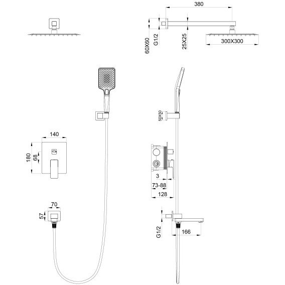 Душевая система Splenka S01.24.03 320x210 мм, со смесителем, золотой матовый
