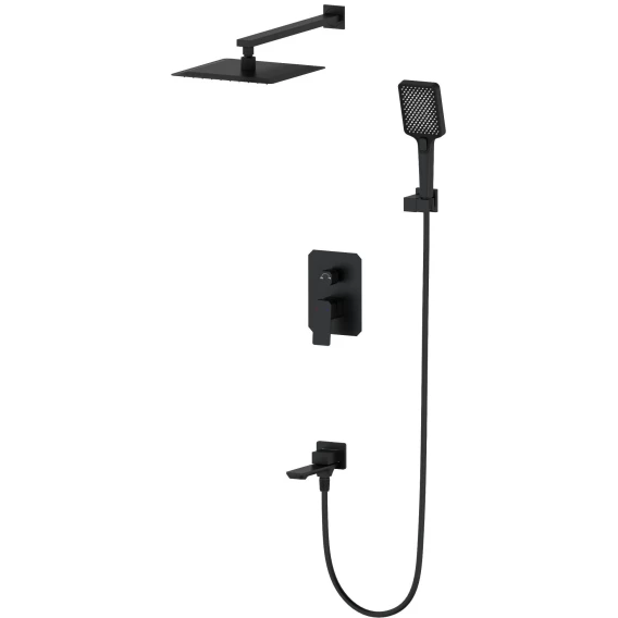 Душевой комплект Wonzon & Woghand Diamond WW-88939011-MB 300 мм, со смесителем, черный матовый