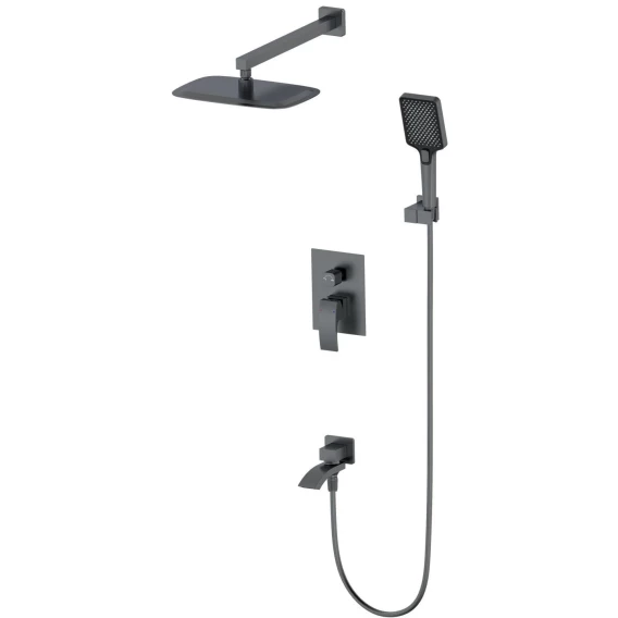 Аэратор, Душевой шланг, Душевая лейка, Держатель для душевой лейки, Подключение для душевого шланга, Верхний душ, Излив, Скрытая монтажная часть, Смеситель, Кронштейн