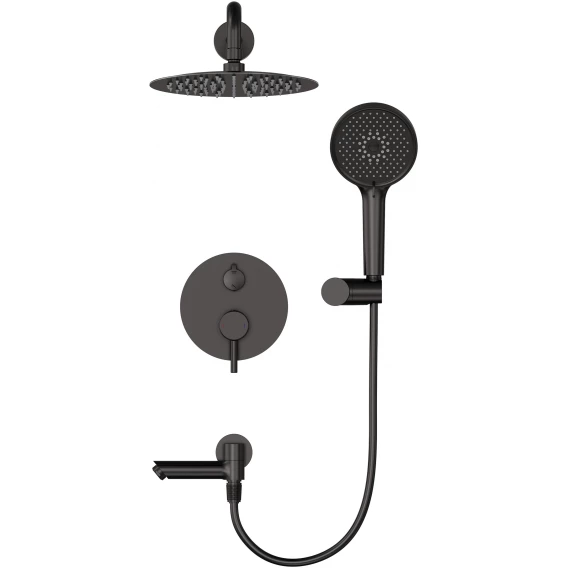 Душевой комплект Wonzon & Woghand Solo WW-939032-BGM 250 мм, со смесителем, темный графит матовый