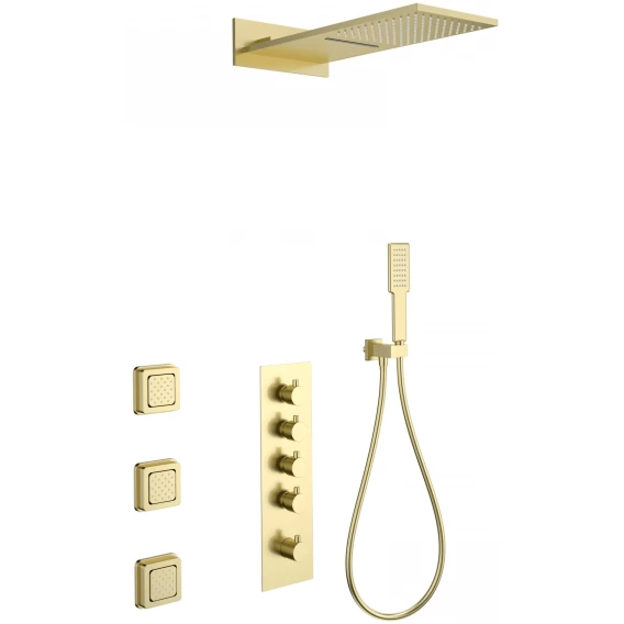 Душевой шланг, Душевая лейка, Подключение для душевого шланга с держателем, Верхний душ, Скрытая монтажная часть, Кронштейн, Термостат, Душевая форсунка