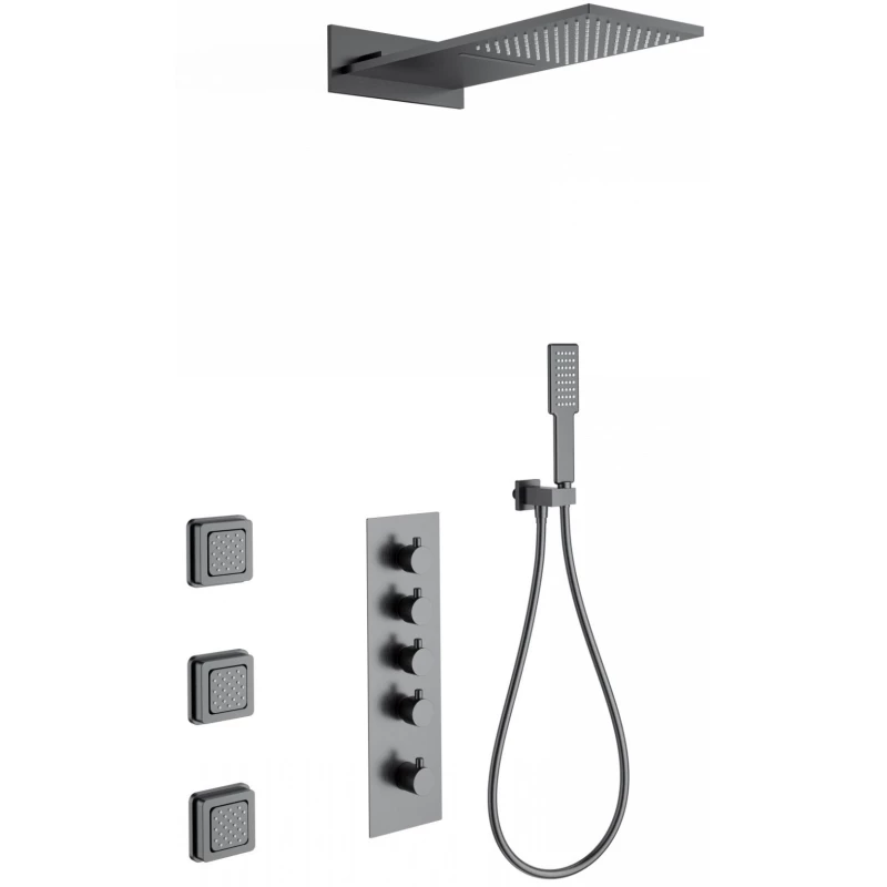 Душевой шланг, Душевая лейка, Подключение для душевого шланга с держателем, Верхний душ, Скрытая монтажная часть, Кронштейн, Термостат, Душевая форсунка