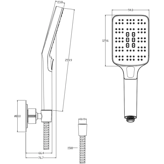 Душевой шланг, Душевая лейка, Держатель для душевой лейки