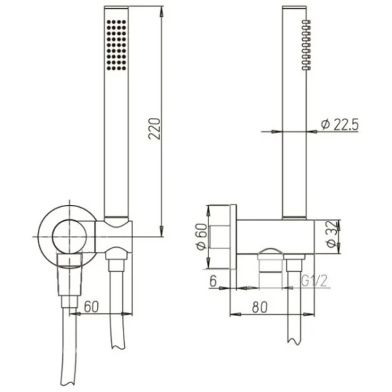 Душевой шланг, Душевая лейка, Подключение для душевого шланга с держателем