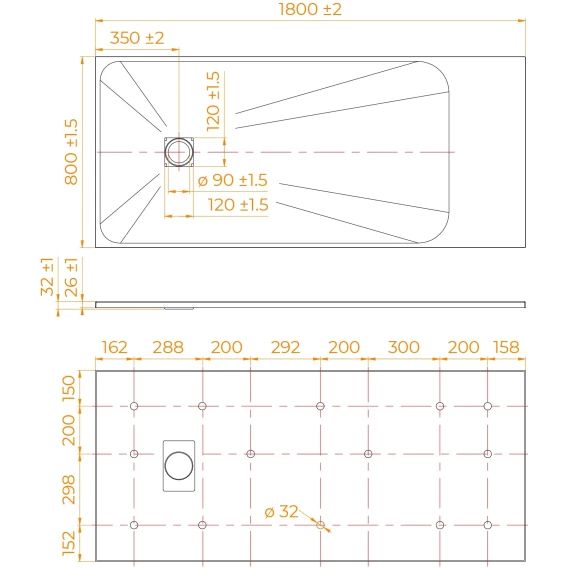 Душевой поддон 180x80 см RGW SMC TSS-188W 553502818-01