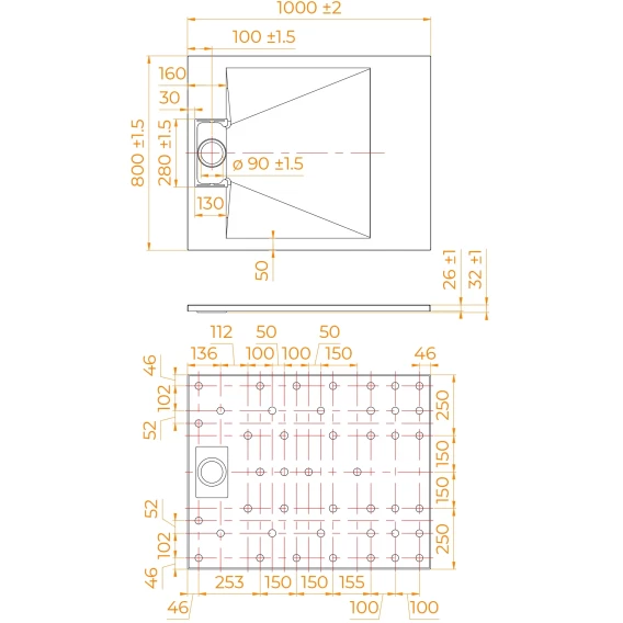Душевой поддон 100x80 см RGW SMC TUS-108W 553702810-01