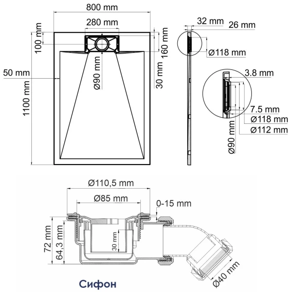 Сифон для раковины 1 1/4"-32x40/50 АНИ пласт BM1016