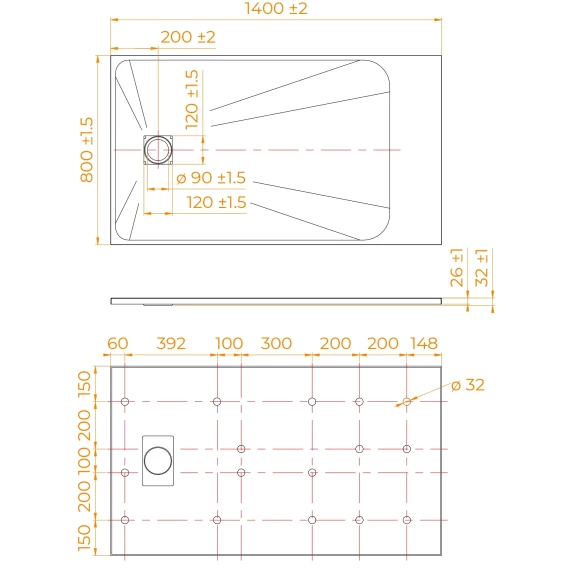 Душевой поддон 140x80 см RGW SMC TUS-148W 553702814-01