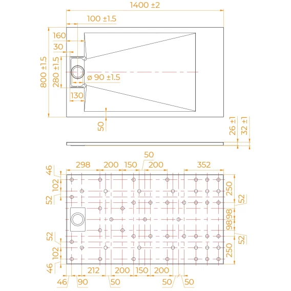 Душевой поддон 140x80 см RGW SMC TUS-148W 553702814-01