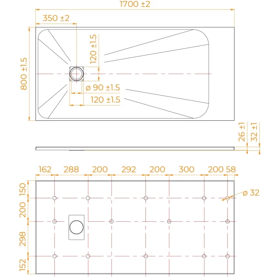 Душевой поддон 170x80 см RGW SMC TSS-178W 553502817-01