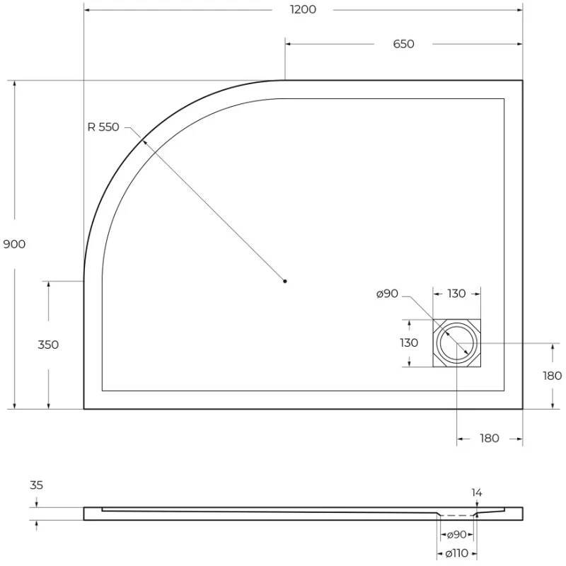 Артикул: TRAY-MR-UNO-RH-120/90-550-35-W-L-BO