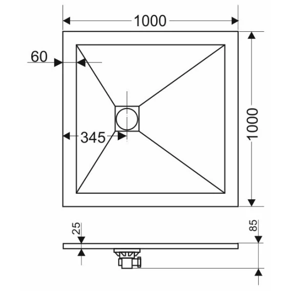 Душевой поддон из литьевого мрамора 100x100 см Grossman Strong GR-S2100100Q