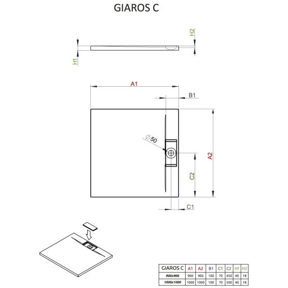 Душевой поддон из литьевого мрамора 100x100 см Radaway Giaros C M3GRC1010