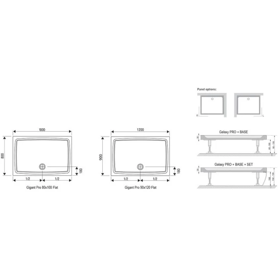 Поддон Gigant Pro Flat подходит для душевых уголков SRV2-S+SRV2-S, ASDP3+APSS, SDZ3+PSS, SDOP+PSS, BLRV2K+BLRV2K, BLDP2+BLPS, BLDP4+BLPS, NRDP2+RPS, NRDPR4 + RPS, PDOP2+PPS, CRV1+CRV1, CRV2+CRV2, CRV2+CPS, SMSD2+SMPS, BSDPS и ванных комнат с душевыми дверьми ASDP3, SDZ3, SDOP, BLDP2, BLDP4, PDOP1, PDOP2, NRDP2, NRDP4, CSD1, CSD2, CSDL2, SMSD2, BSD2, BSD3.