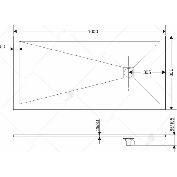 Душевой поддон из литьевого мрамора 100x80 см RGW Stone Tray ST-0108Tr 16152810-11