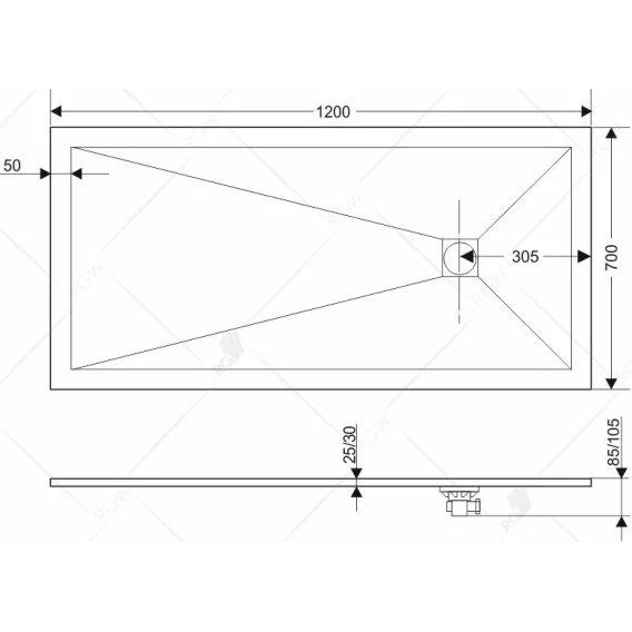 Душевой поддон из литьевого мрамора 120x70 см RGW Stone Tray ST-0127Be 16152712-03