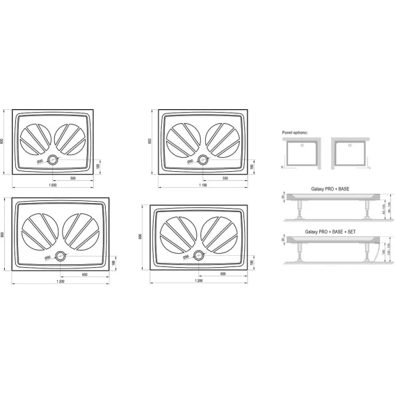 - поддон + каркас (пространственная рама) / ножки Base: для облицовывания плиткой