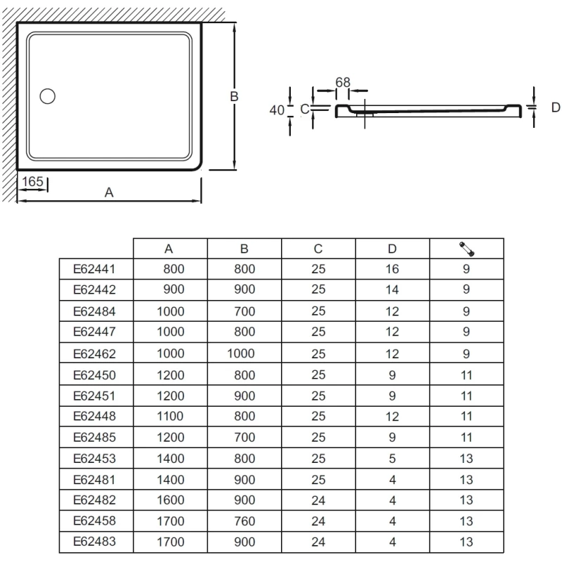 Акриловый поддон 80x75 см Ideal Standard Hotline K277101