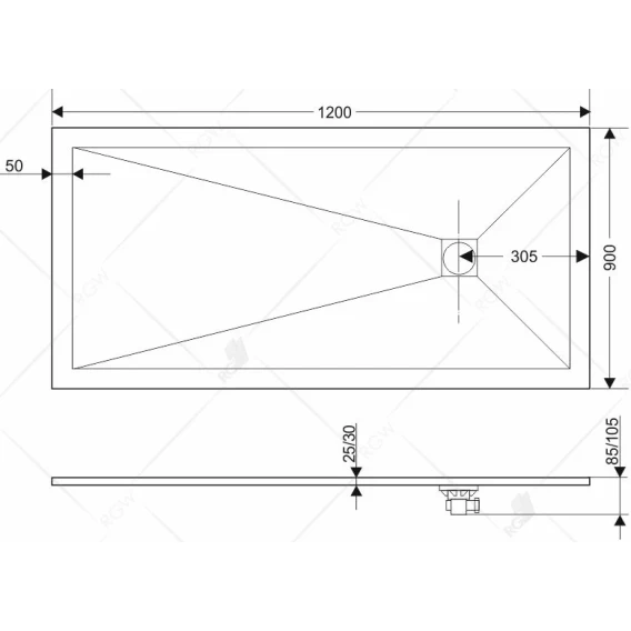 Душевой поддон из литьевого мрамора 120x90 см RGW Stone Tray ST-0129Tr 16152912-11