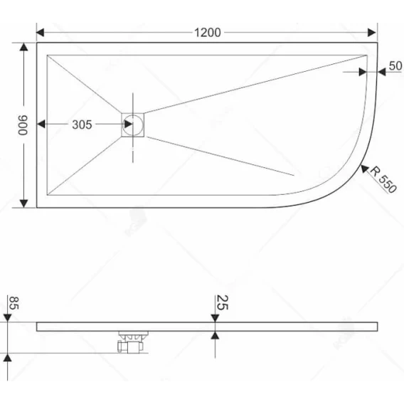 Душевой поддон из литьевого мрамора 120x90 см RGW Stone Tray ST/AL-0129W 16154129-01R