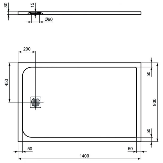 Душевой поддон из литьевого мрамора 140x90 см Ideal Standard Ultra Flat S K8256FR