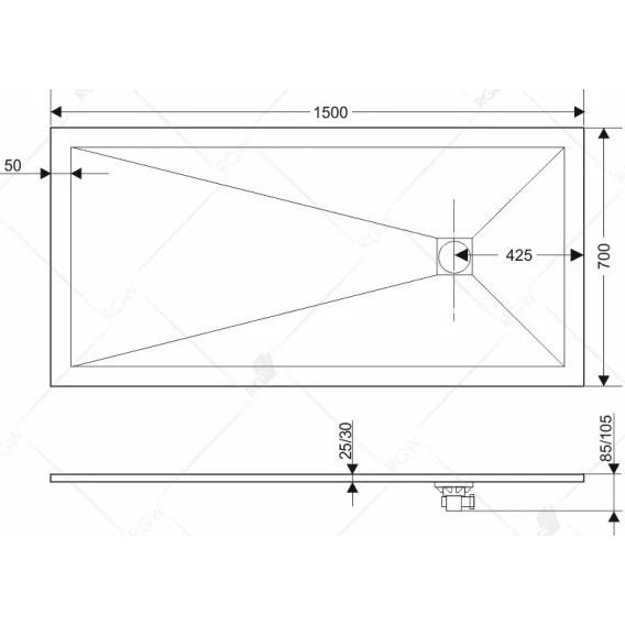Душевой поддон из литьевого мрамора 150x70 см RGW Stone Tray ST-0157G 16152715-02