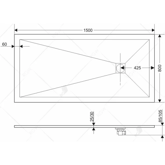 Душевой поддон из литьевого мрамора 150x80 см RGW Stone Tray ST-0158W 16152815-01