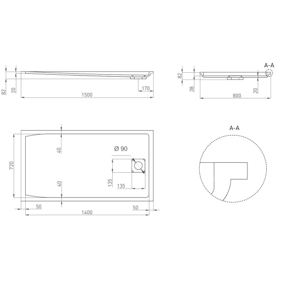 Душевой поддон из литьевого мрамора 150x80 см Salini S-Stone Capri 120221M