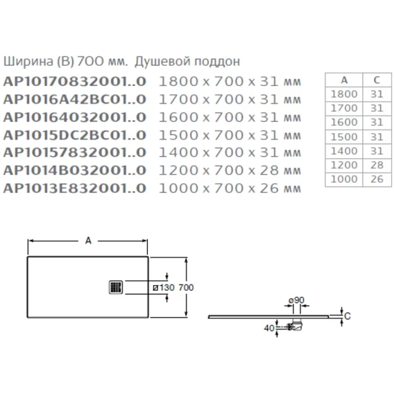 Душевой поддон из литьевого мрамора 160x70 см Roca Terran AP1016402BC01100