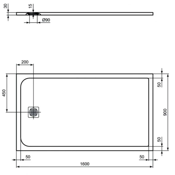 Душевой поддон из литьевого мрамора 160x90 см Ideal Standard Ultra Flat S K8277FV