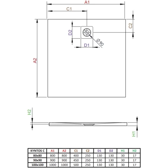 Душевой поддон из литьевого мрамора 80x80 см Radaway Kyntos C Anthracite HKC8080-64