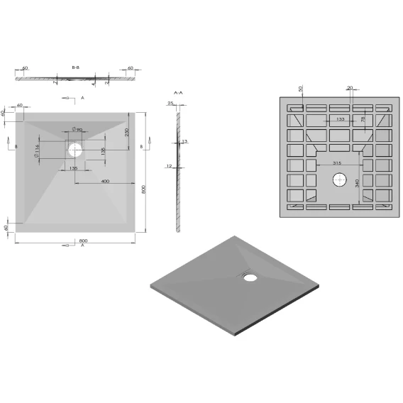 Душевой поддон из литьевого мрамора 80x80 см Vincea VST-4SR8080W