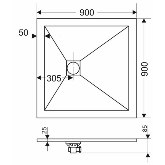 Душевой поддон из литьевого мрамора 90x90 см Grossman Strong GR-S29090Q