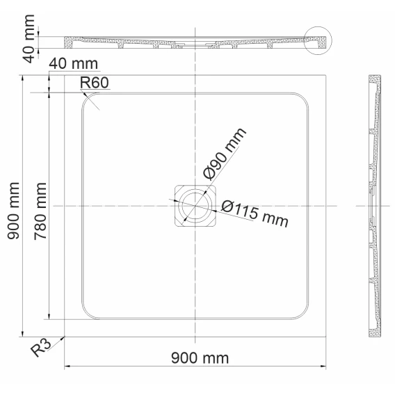 Душевой поддон из литьевого мрамора 90x90 см WasserKRAFT Dinkel 58T 58T03