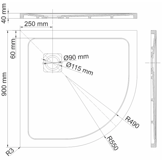 Душевой поддон из литьевого мрамора 90x90 см WasserKRAFT Rhin 44T 44T01