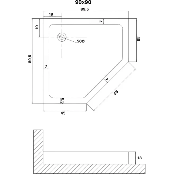 Душевой поддон Niagara Eco NG-P9090-14D 89,5x89,5 см, пластиковый, пятиугольный, белый