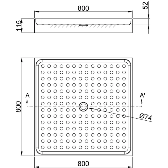 Душевой поддон Nofer 13055.2.S 80x80 см, стальной, квадратный, нержавеющая сталь