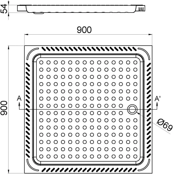 Душевой поддон Nofer 13056.2.S 90x90 см, стальной, квадратный, нержавеющая сталь