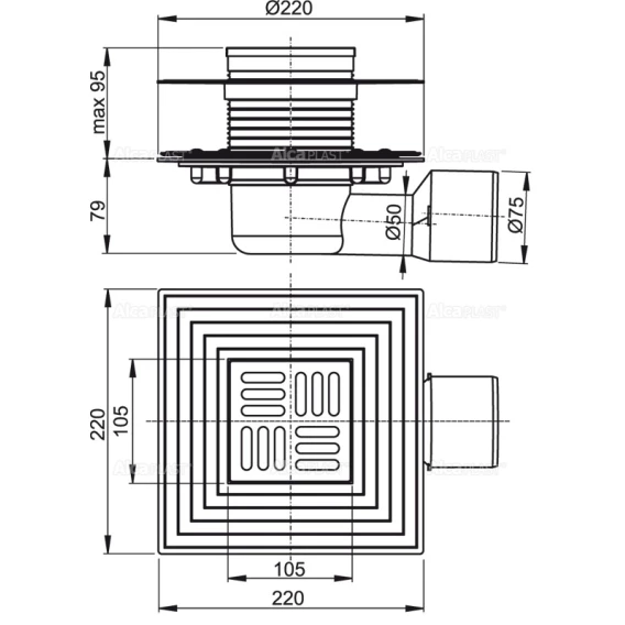 • Горловина сливного трапа 105×105 мм