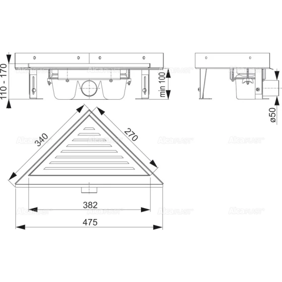 Душевой трап AlcaPlast ARZ1 Triton ARZ1 + TRITON с решеткой, перфорированный, нержавеющая сталь