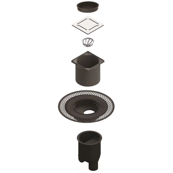 • Самопромывной S-образный сифон PP: вертикальный выпуск, пропускная способность 48 л/мин, монтаж 360°