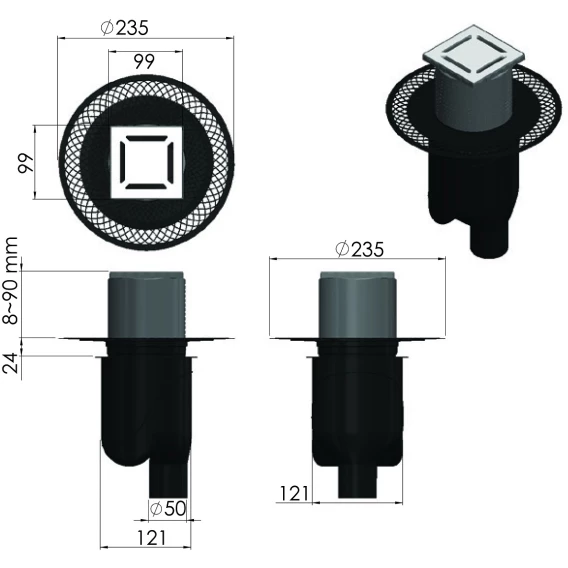 Быстро убирает воду, решетка не скользит, легко чиститься.
