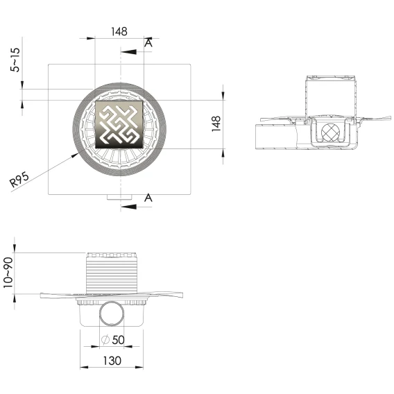 • Сифон PP с гидроизоляцией: горизонтальный выпуск D50 H65, монтаж 360°