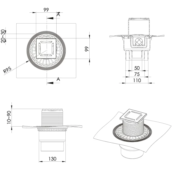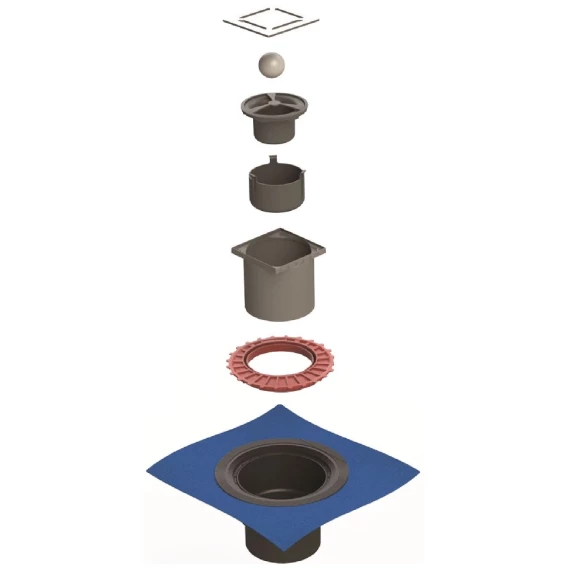 • Сифон PP с гидроизоляцией: вертикальный выпуск D50/70/100, монтаж 360°