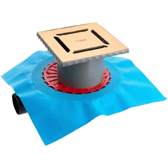 • Сифон PP с гидроизоляцией: горизонтальный выпуск D50 H65, монтаж 360°