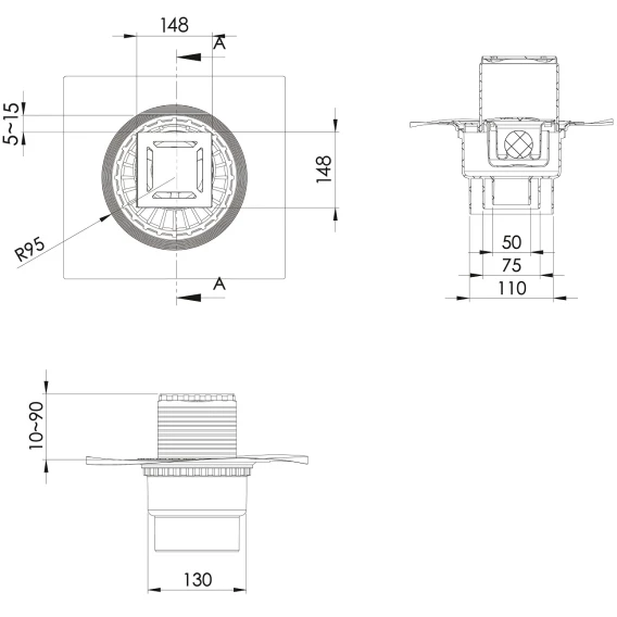• Сифон PP с гидроизоляцией: вертикальный выпуск D50/70/100, монтаж 360°